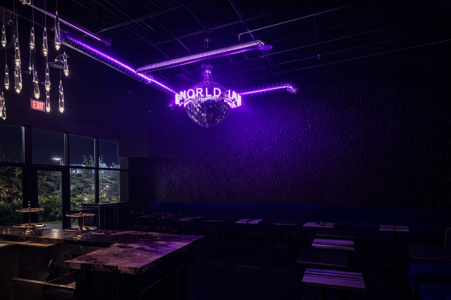 - Desert-Glam Design: A stylish private room featuring unique art, sophisticated lighting, and a show-stopping giant disco ball hanging from the ceiling.